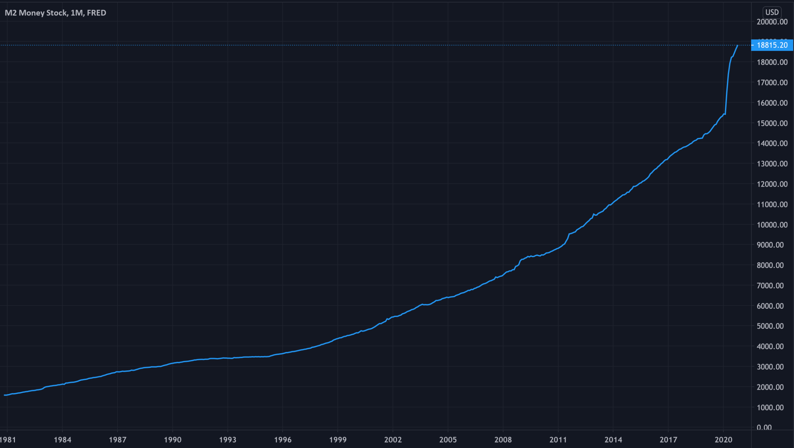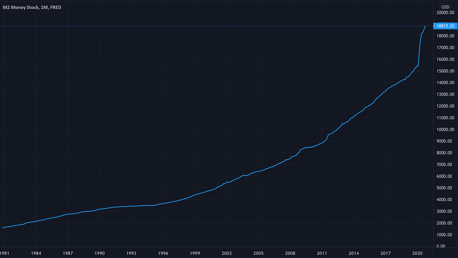 I've also attached a graphic of M2, (the money supply), over my lifetime. When you see the amount of money that the Federal Reserve has printed due to COVID19 and the deficit that the country is running, I believe it will be impossible to think that inflation will stay as low in the future as it has been in the past. And if inflation begins to rise, interest rates will have to rise to combat that if the Federal Reserve plans on controlling inflation.